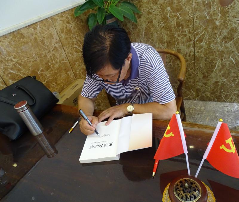 访谈最后吴老赠送党员之家同志两本他亲手主编的两本书籍《忠魂扬四明》、《四明英雄颂》并亲手提名。