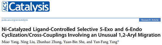 乐鱼leyu(中国)佘远斌和杨云芳团队于2022年3月在《ACS Catalysis》发表了题为“Ni-Catalyzed Ligand-Controlled Selective 5-Exo and 6-Endo Cyclization/Cross-Couplings Involving an Unusual 1,2-Aryl Migration”的研究论文。