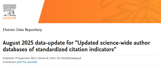 日前,斯坦福大学(Stanford University)和国际权威学术出版社爱思唯尔(Elsevier)共同发布2025年全球前2%顶尖科学家榜单(World's Top 2% Scientists),榜单分为“终身科学影响力排行榜”和“年度科学影响力排行榜”。
