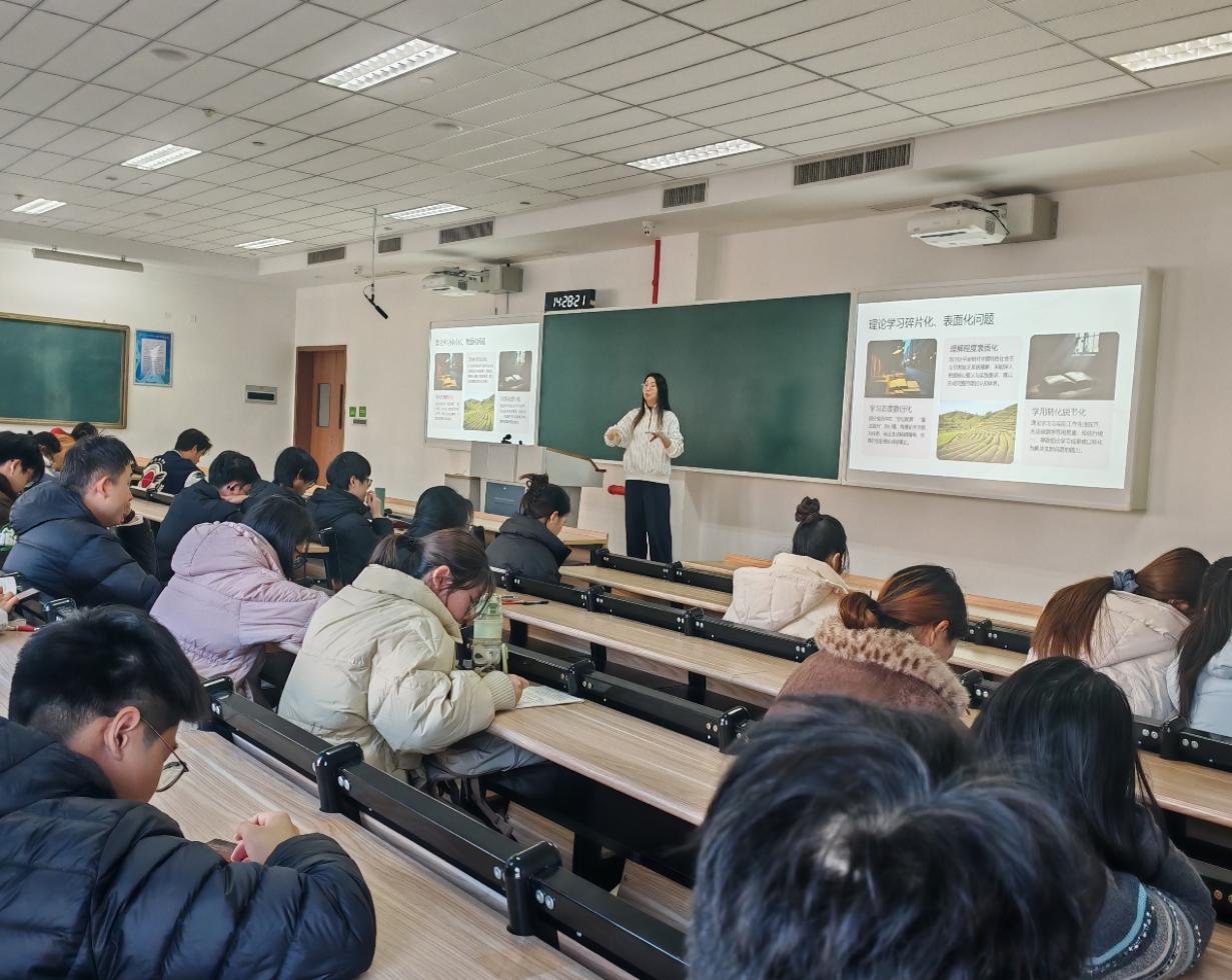 2026年1月9日下午两点,水资源能源化方向师生联合党支部和功能膜材料应用方向师生联合党支部在化工实训楼C204会议室举行了“在红色精神中汲取力量——新时代师生党员的使命担当与实践路径”为主题的红色半月谈主题党课,本次党课邀请到了徐燕青老师作为主讲人,通过深入学习党的红色历史与精神谱系,引导广大师生党员进一步坚定理想信念、明晰责任担当,并将学习成果转化为推动学校发展与个人进步的实际行动。